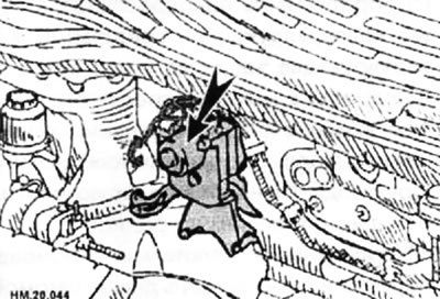 Выконвайце асцярожнасць, каб не пашкодзіць край датчыка і зуб'і ротара. Пры зняцці калодкі пярэдняга або задняга кола адлучыце датчык ABS і адвядзіце яго ў бок.