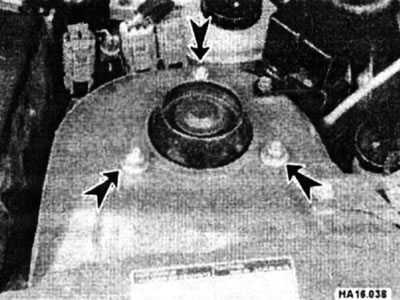 - Адкруціце гайкі на кранштэйне ізалятара мацавання (стрэлкі), а затым зніміце амартызацыйную стойку з аўтамабіля.