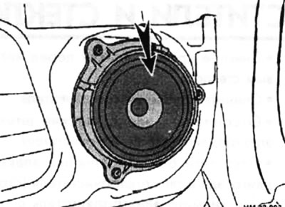 Гучнагаварыцелі (стрэлка) размешчаны ў пярэдніх і задніх дзвярах. На малюнках паказаны левыя дзверы, у правых гучнагаварыцелі размяшчаюцца аналагічна.