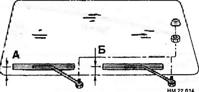 - Падніміце шчоткі ўгару і затым усталюеце іх на паверхню шкла такім чынам, каб перад зацягваннем гаек мацавання цэнтральныя часткі шчотак размяшчаліся на адлегласцях А і Бы ад ніжняй абзы ветравога шкла.