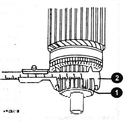 - Каб абнавіць моцна зношаны калектар (1), яго можна абтачыць. Перад гэтым вымерайце дыяметр калектара штангенцыркулем (2).