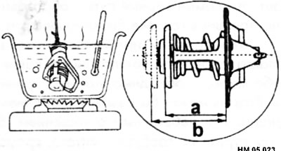 - Працягнеце нагрэў вады, пакуль тэмпература не дасягне канца адкрыцця. Выняўшы тэрмастат, вымерайце памер "b" і параўнайце з памерам "а". Рознасць павінна быць 8,6 мм, інакш заменіце тэрмастат.