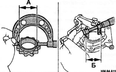 ♦ З дапамогай нутрамера вымерайце ўнутраны дыяметр корпуса алейнай помпы (Б).