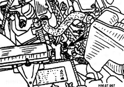 Кантроль дэтанацыі дзейнічае на халастым ходу. Месца размяшчэння датчыка пазначана стрэлкай на малюнку ніжэй.