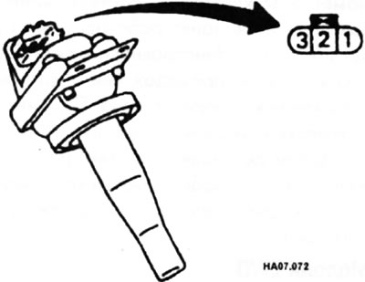 - Адлучыўшы раздым шпулькі запальвання, праверце першасную абмотку шпулькі запальвання на праводнасць.