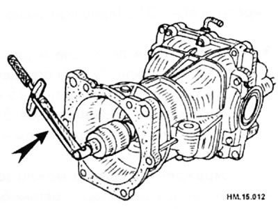 - Усталюеце накидную галоўку для вядучай шасцярні на шлицы вядучай шасцярні. Вымерайце праднацяг з дапамогай дынамаметрычнага ключа (стрэлка).