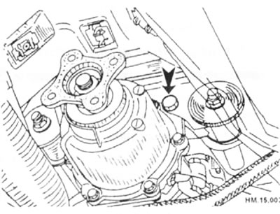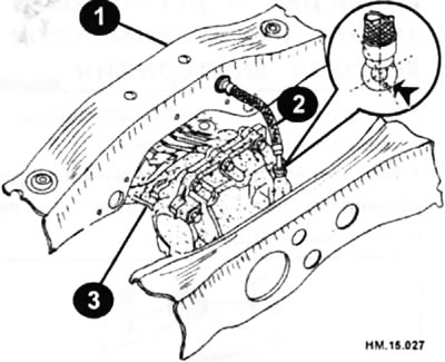 - Металічны злучальнік на іншым канцы вентыляцыйнага шланга запрасуйце ў вечка задняга дыферэнцыяла галоўнай перадачы (3).